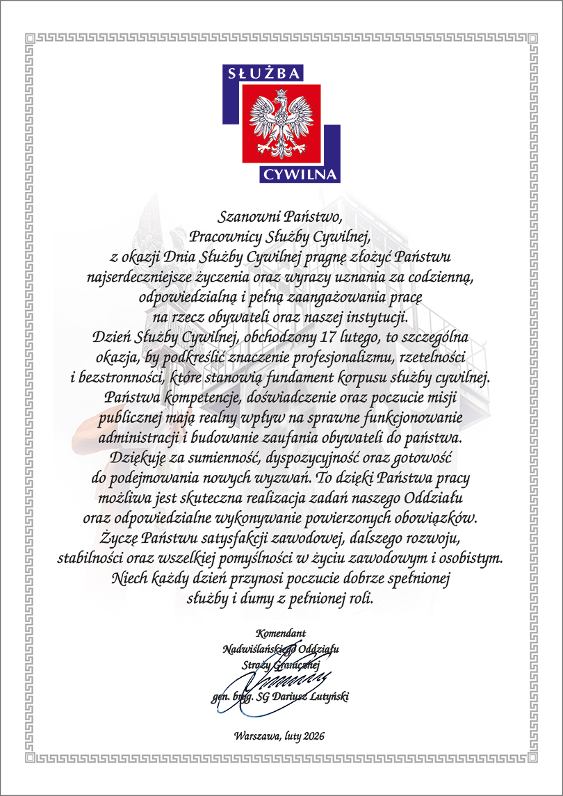 Życzenia Komendanta NwOSG w okazji Dnia Służby Cywilnej