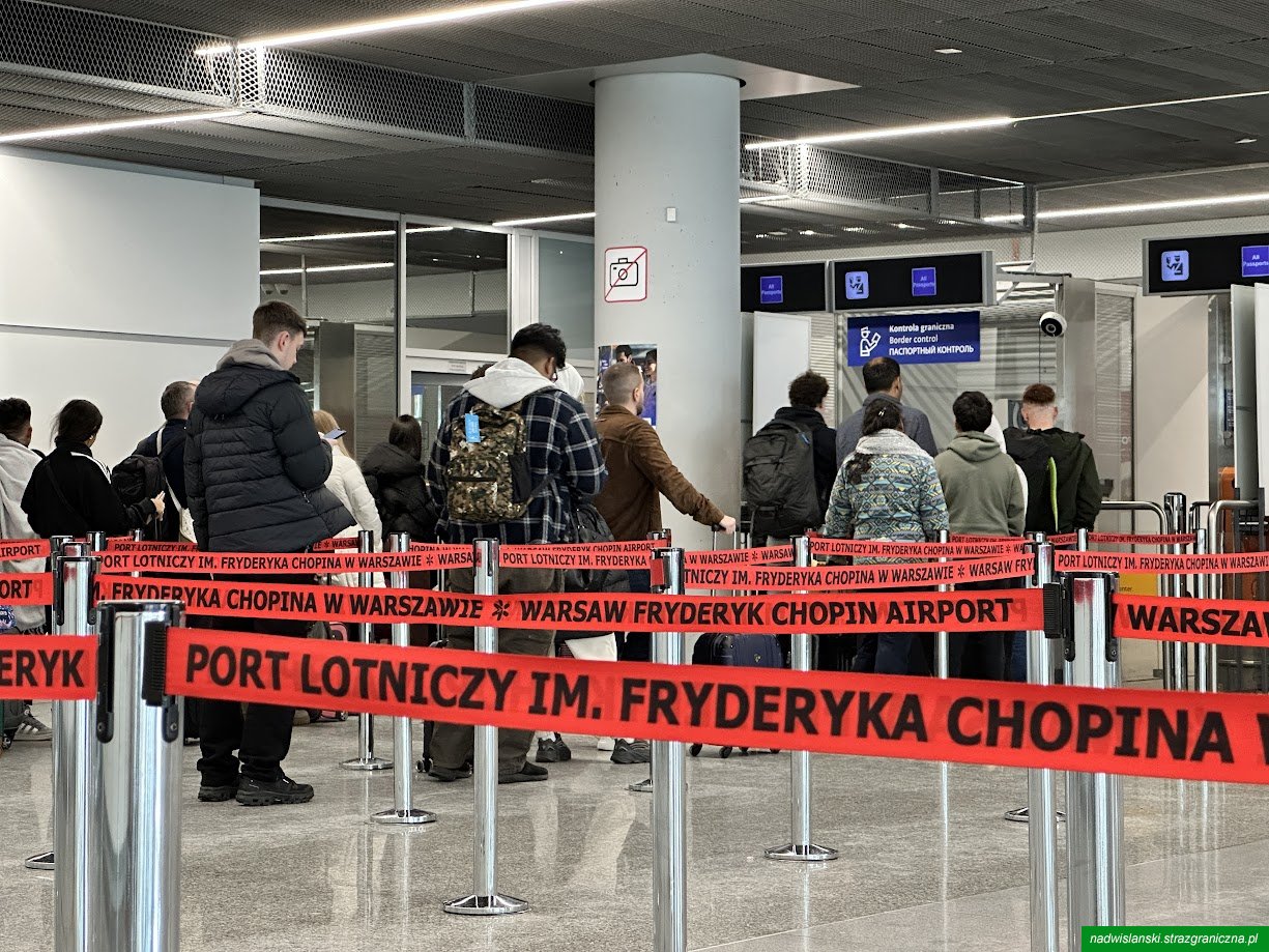 Na kierunku wjazdowym do Polski 6 cudzoziemców nie otrzymało zgody na przekroczenie granicy. Powody były klasyczne dla lotniskowych realiów: brak wymaganej wizy, niespójny cel podróży oraz dane w systemach wskazujące na niepożądany pobyt w strefie Schengen. Wśród zatrzymanych znaleźli się obywatele Indii, Turcji, Rosji i Ukrainy. Podczas kontroli ujawniono również podrobiony meksykański paszport, którym posługiwał się obywatel Pakistanu podróżujący z Seulu.